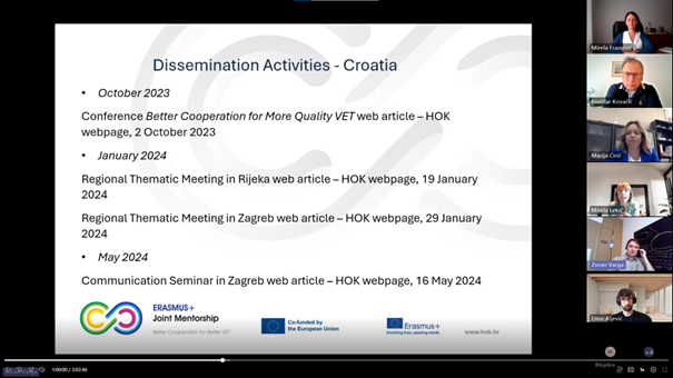 Координатор пројекта (ХОК) је информисао пројектне партнере о променама у пројектном конзорцијуму и представио повратне информације Националне агенције у вези са Привременим извештајем. Договорено је да треба направити нека побољшања у управљању пројектима и пројектним активностима како би се квалитет пројекта још више подигао.